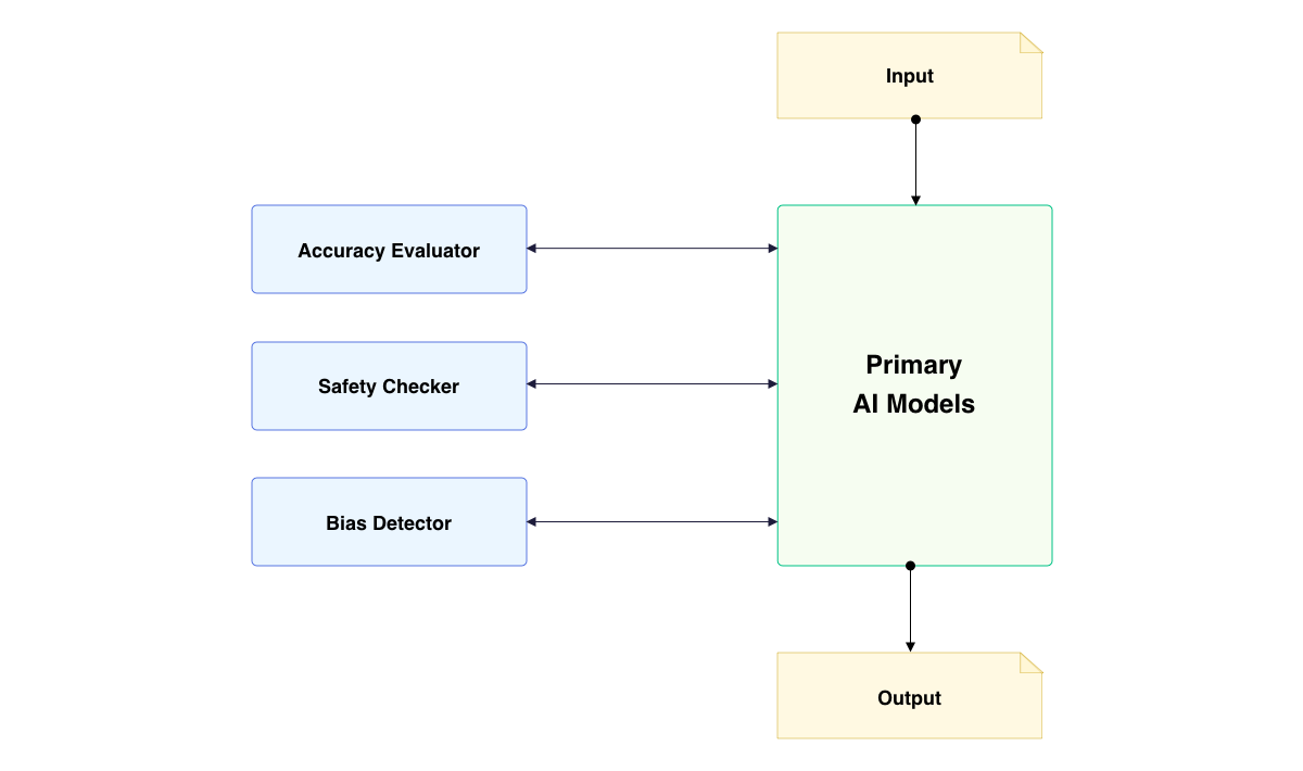 The process begins with the primary AI system generating responses or completing tasks. These outputs are then fed into the evaluation AI systems, which analyze them based on predefined metrics. For instance, one model might focus on assessing the factual accuracy of the information, while another examines linguistic consistency and coherence. Additional models could be dedicated to detecting potential biases or ethical concerns in the generated content.