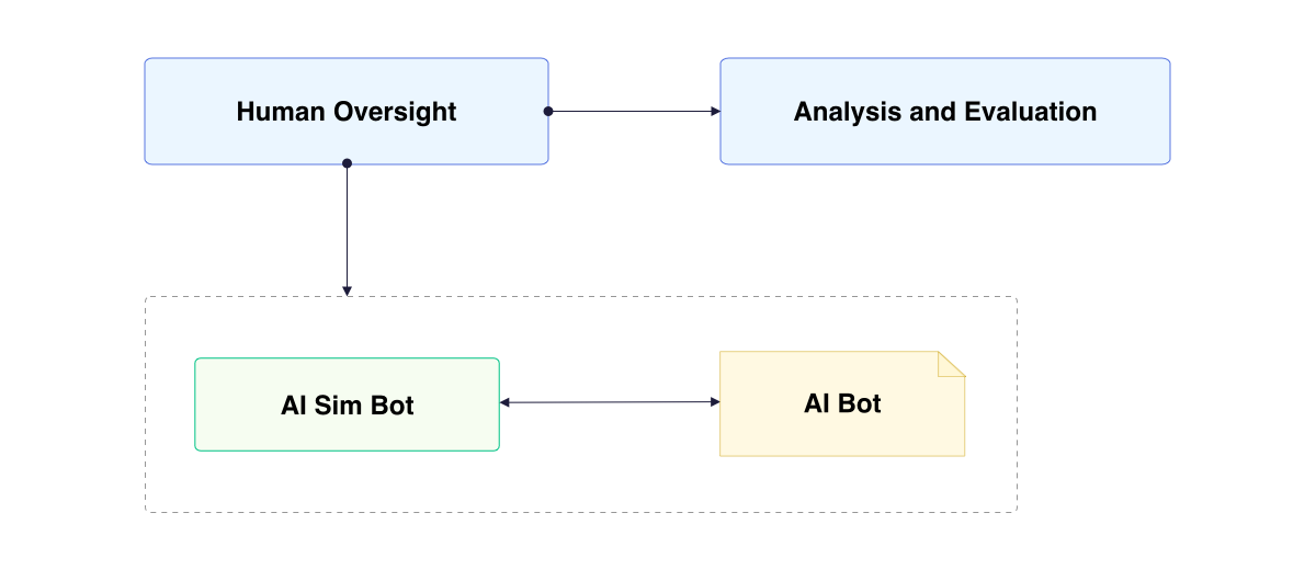 The process begins with defining a set of testing objectives and parameters. These may include specific use cases, edge cases, or particular aspects of the bot’s functionality that require thorough examination. We then prompt our testing LLMs with these parameters, instructing them to generate a series of interactions that align with our testing goals.