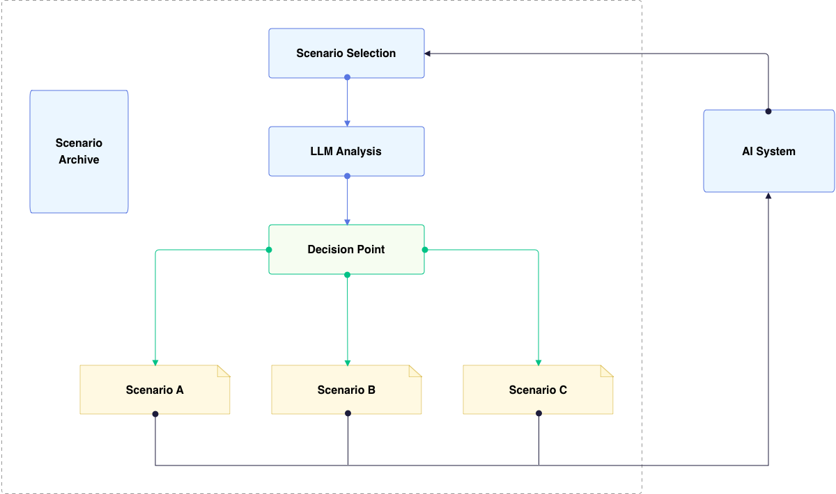 At the heart of this functionality is a specialized LLM query system. This system analyzes the current circumstances and state of the conversation or interaction, then selects the most suitable scenario from a pre-prepared archive. In the context of QA, this translates to an ability to dynamically adjust testing parameters and focus areas based on real-time performance and behavioral patterns of the AI system.